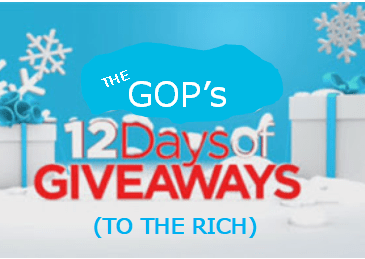 In response, Indivisible Springfield is beginning the “12 Days of Giveaways (to the Wealthy).” We previewed the plan before the Thanksgiving holiday, and now we’re ready to start in earnest.
